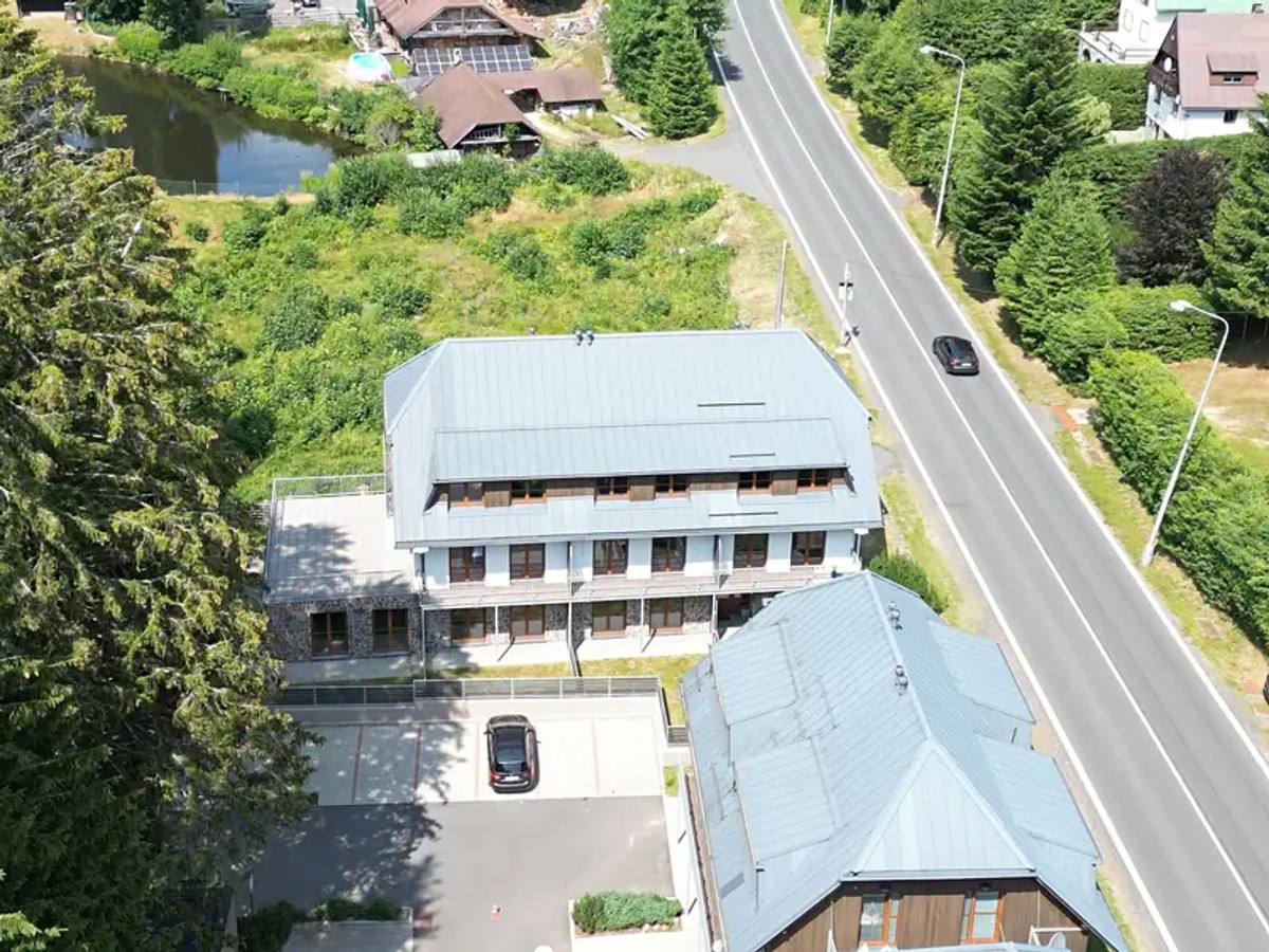 Spočítat splátkyNabízím ke koupi byt o dispozici 2+kk velikosti 52 m2, vybavený novou kuchyní včetně spotřebičů, s vlastní zahradou (130 m2), sklepem (2 m2) a parkovacím stáním přímo před domem. Tento byt má navíc řešený vlastní vchod. Umístěn je v přízemí bytového domu v Železné Rudě. V domě je celkem 9 bytů, v každém patře 3. Celý objekt v současné době k nastěhování. V bytovém domě je zajištěno fungující SVJ. Byt je dispozičně členěn na zádveří, obývací pokoj s kuchyňským koutem včetně spotřebičů, ložnici a koupelnu se sprchovým koutem. Z obývacího pokoje a ložnice je možný vstup na soukromou zahradu. V ceně bytu je zahrnutý sklep. Venkovní parkovací stání před domem je v hodnotě 200.000, - Byty v domě splňují požadavky moderního bydlení s možností trvalého bydlení. Vysoká kvalita stavby odpovídá místním náročným klimatickým nárokům. Patří mezi ně okna s izolačním trojsklem, střešní krytina z falcovaného plechu v antracitové barvě, ohřev vody samostatným bojlerem, vytápění bytové jednotky elektrickými přímotopy, vinylové podlahové krytiny, kvalitní a moderní sanita, dlažby a obklady, obložkové dveře atd. Nabízený byt představuje výjimečnou investiční příležitost pro vlastní bydlení na horách, i v kombinaci například s krátkodobými pronájmy. Atraktivní lokace bytu nabízí neomezené možnosti aktivního vyžití v přírodě, turistiky a cykloturistiky. V docházkové vzdálenosti 5 min je skiareál Belveder a dále Nový přírodní biotop Žabáky. Nedaleko se nacházejí další oblíbené skiareály např. Špičák či Velký Javor v Německu. V okolí bytového domu je dostupná veškerá občanská vybavenost